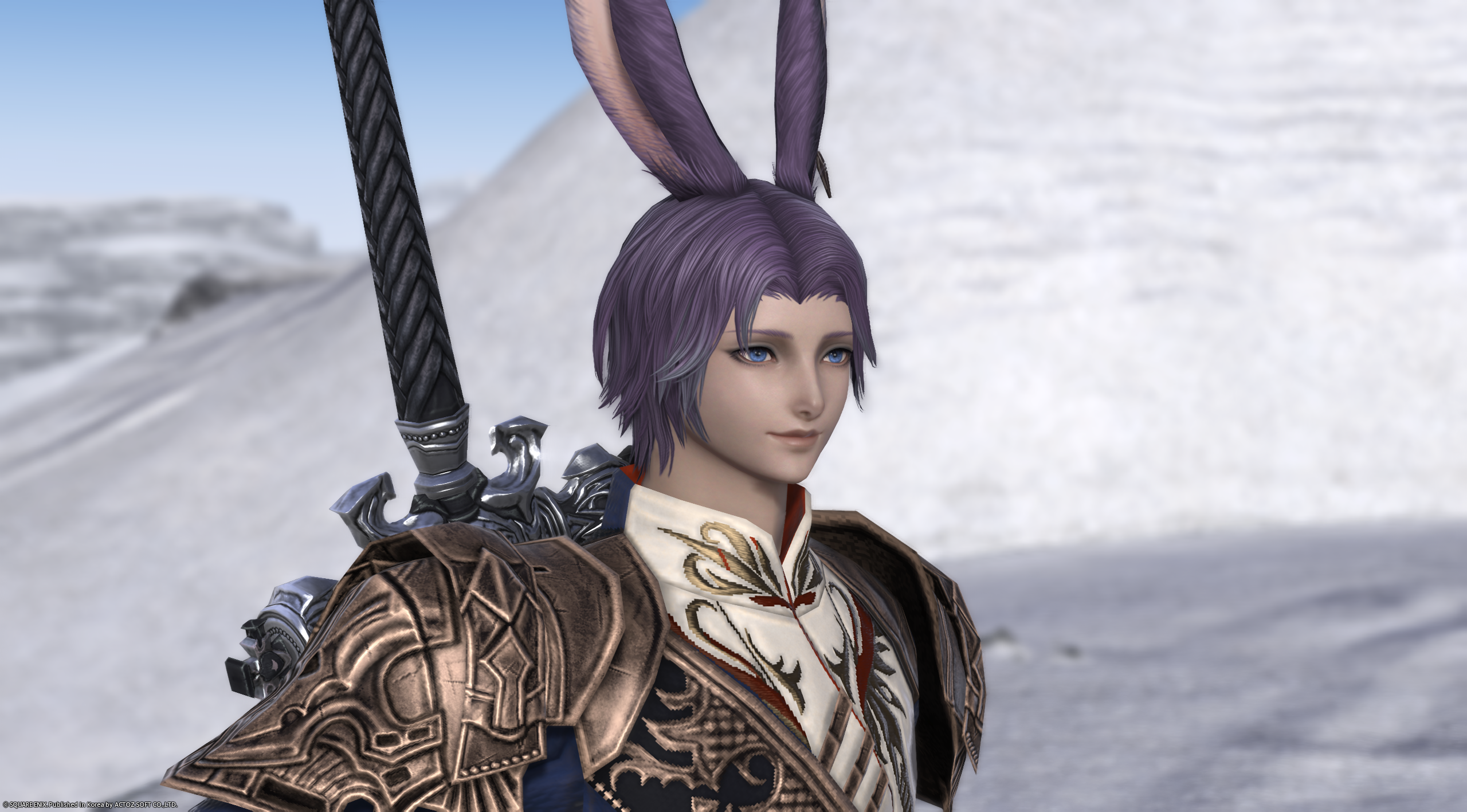 - 진한 보랏빛 머리에 파란색 눈. 살짝 올라간 강인한 눈매. 키가 크고, 덩치가 좋다.