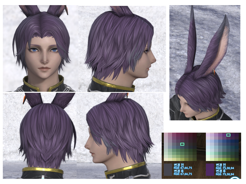 일부러 댄그랑 보색대비/길이반전으로 하려고 진한 보라색머리에 짧은 머리스타일로 설정함