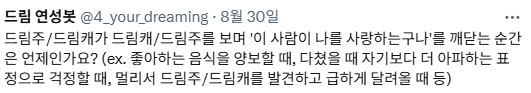 아까 봤던 드림주-드림캐가 이 사람이 나를 정말 좋아하는구나 느끼는 순간은 언제인가? 말이지~