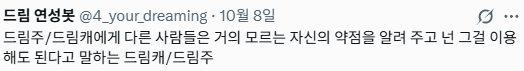드림주 빛전은 감정 쓰레기통 역할에 꽤 익숙한 편일듯?